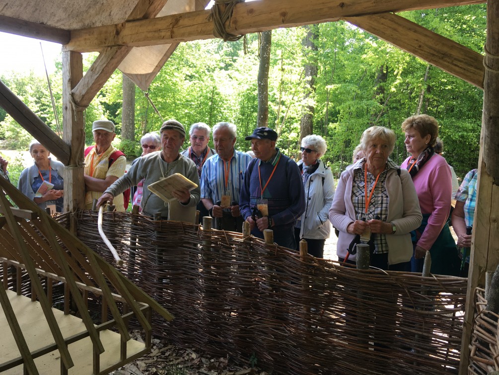 Bei herrlichem Wetter führte die Wanderfahrt ins Blaue 43 Wanderinnen und Wanderer der Ortsgruppe des Schwäbischen Albvereins am vergangenen Sonntag, 06. Mai, zum „Campus Galli“ bei Meßkirch. In einer 2-stündigen Führung über die weitläufige Klosterbaustelle wurde der St. Gallener Klosterplan, der die Grundlage für den Bau bildet, erläutert. Es soll hier über viele Jahre eine Klosteranlage nur mit den Baumethoden und Werkzeugen des Mittelalters entstehen. Es war sehr interessant, den vielen Handwerkern bei ihrer Arbeit zuzuschauen und auch mit ihnen ins Gespräch zu kommen.
